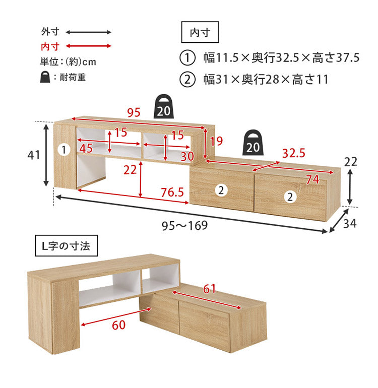 伸縮式 テレビ台 幅95~幅169 スライドテレビ台 24~40型対応 大容量 テレビボード ローボード TV台 伸縮 コーナーテレビ台 L字 ディスプレイ ラック 棚 収納 シンプル 北欧 おしゃれ(代引不可)
