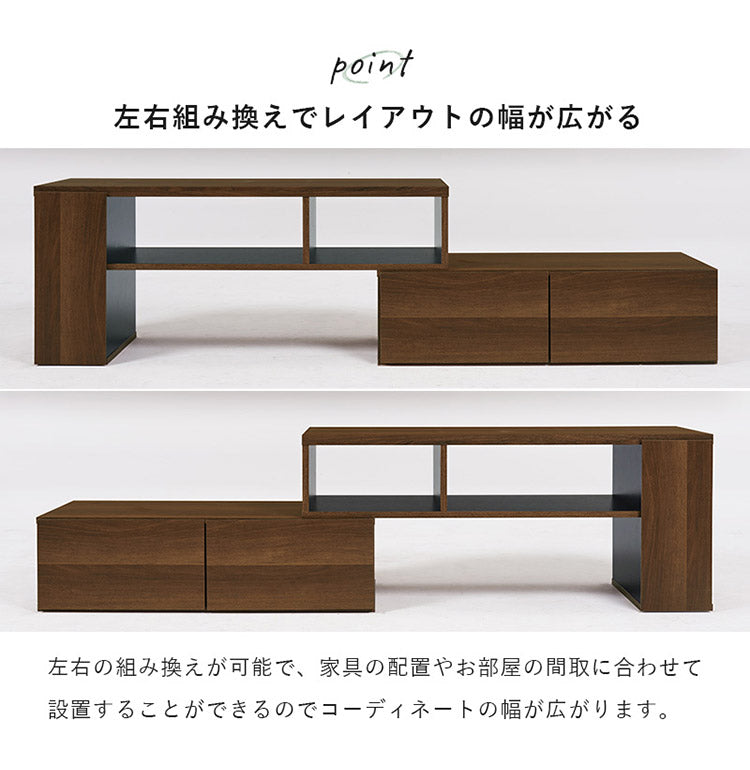 お部屋に合わせて自由にスタイルを変更できるTVボード。DVDやゲームソフトを収納できる引き出しなど収納も充実しています。