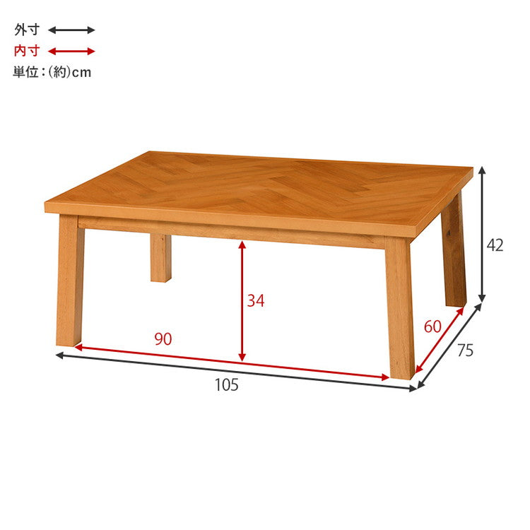カジュアルこたつ 幅105 ヘリンボーン柄 リビングこたつ 温度調節 こたつテーブル センターテーブル リビングテーブル ヘリンボン 北欧 節電 おしゃれ(代引不可)