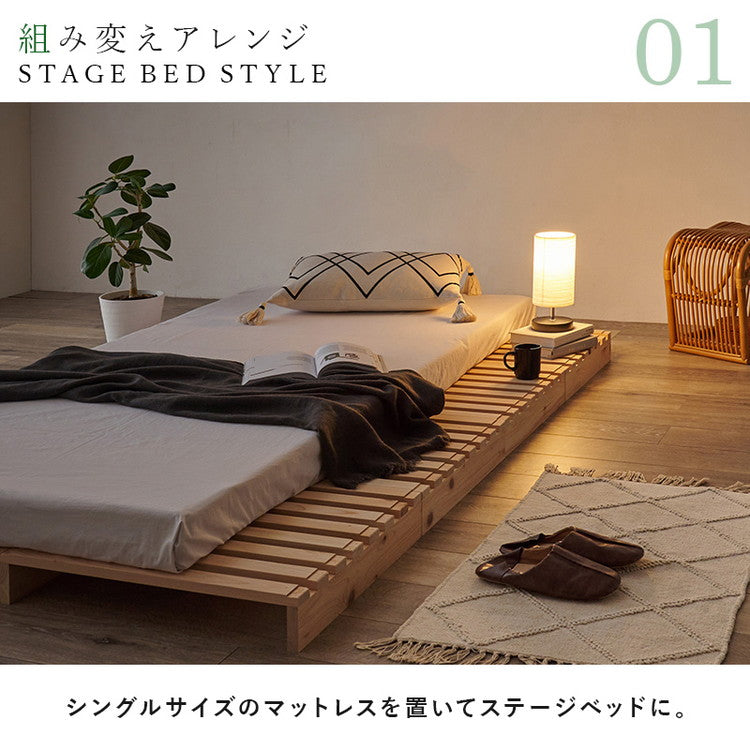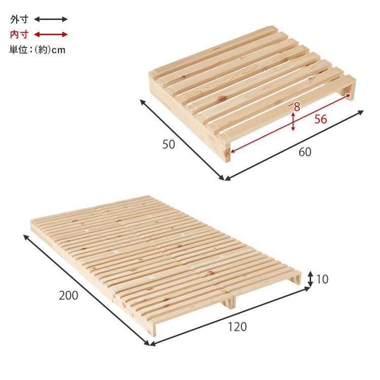 檜(ひのき)の香りや風合いを感じられるすのこベッド。パレット状のすのこ板を並べるだけの簡単設置で移動や模様替えも楽々。