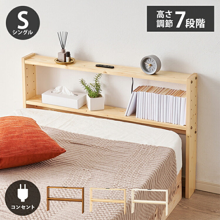 天然木 後付けヘッドボード 高さ調節式 シングル 幅98cm コンセント付き 薄型 スリム 壁付け 可動棚式 ベッド用 ローベッド用 ヘッドボード 単品 本棚 ラック 書棚(代引不可)
