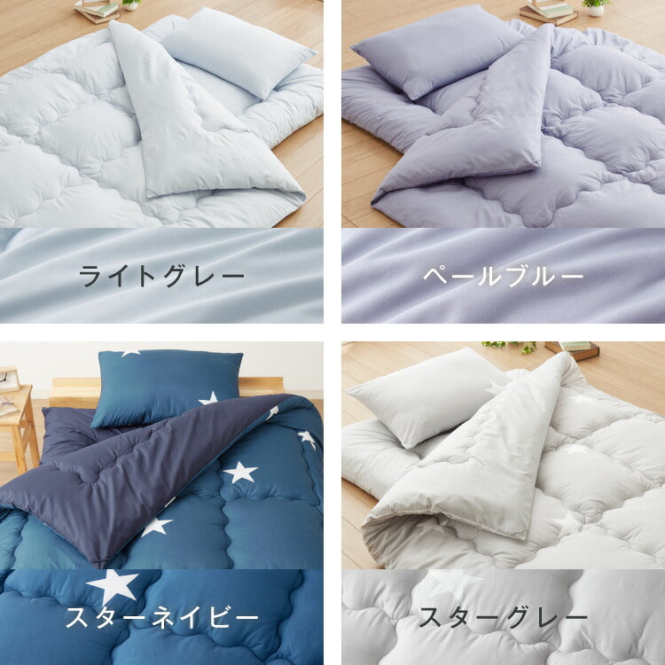 ・家庭で丸洗い可能。お手入れがしやすく長く清潔に使える布団セットです