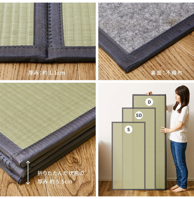 水拭きできる い草風4つ折り畳マットレス セミダブル い草風 水拭きOK 置き畳 縁あり ごろ寝マット ユニット畳 和風 折り畳み 収納式 マットレス(代引不可)