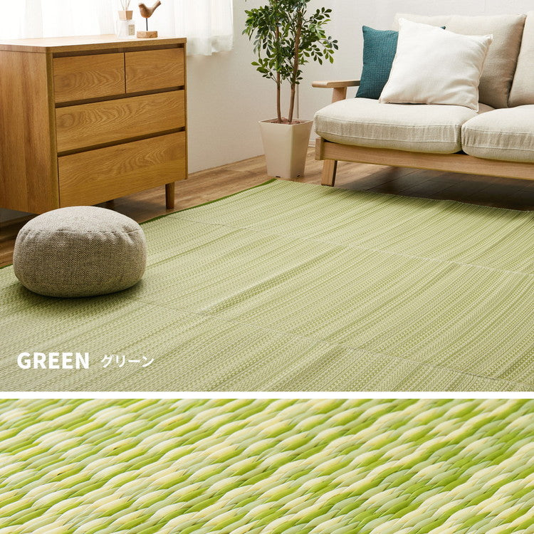 ポリプロピレンを使用した い草風のラグです。手軽に水洗いでき、お手入れが楽。ポリプロピレンを使用した い草風のラグです。手軽に水洗いでき、お手入れが楽。ペットとの快適な暮らしや、アウトドアにも最適です。モダンなリビングにも合う様なデザインに仕上げました。