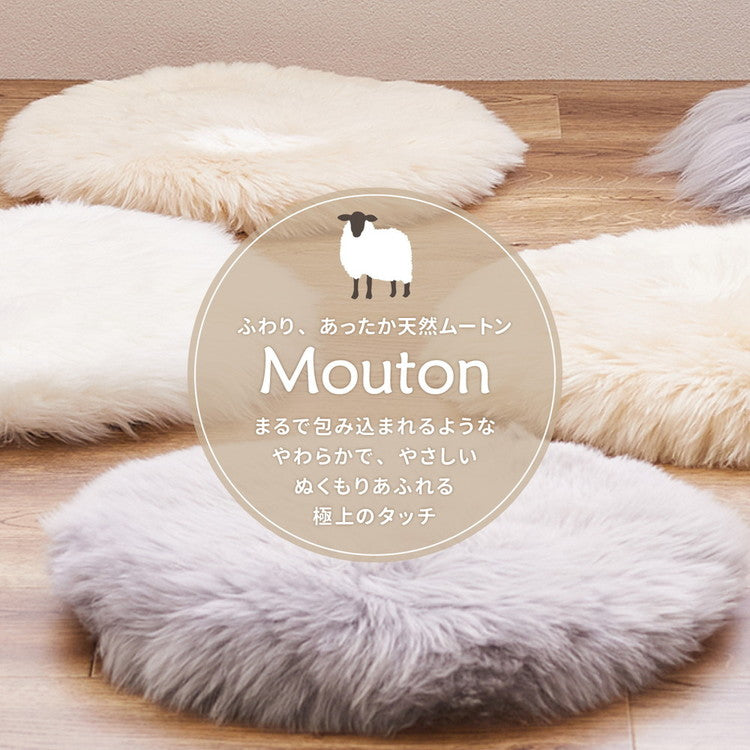 ニュージーランドの大自然で育った羊からとれるムートンは、自然からの贈り物。吸水性、放湿性に優れ、火にも強く、燃え広がりにくい、まさに呼吸する素材。表面は水を弾く性質もあり、自然の効力をもった人にやさしい万能素材です。包み込まれるようにやわらかで、優しいぬくもりがあふれるタッチ感は、他の追随を許さない特別な感触です。中材にはウレタンフォームを使用しているのでクッション性があります。