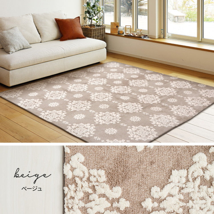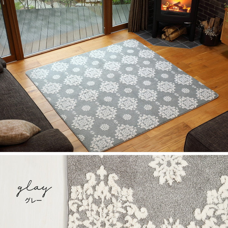 ラグ シュシュ 185×185cm 2畳 厚手ラグ ホットカーペットカバー こたつ敷き 雪の結晶 ダマスク柄 姫系 かわいい 北欧 あったか 秋冬用 ピンク(代引不可)