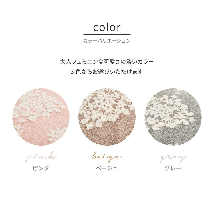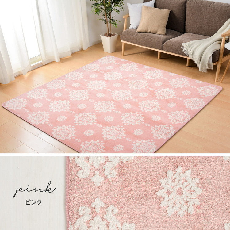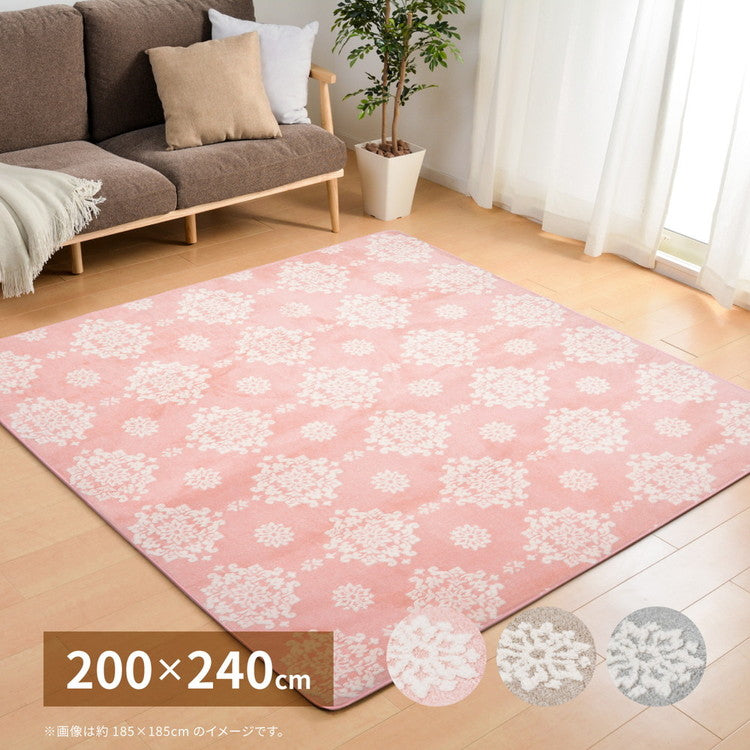 ラグ シュシュ 200×240cm 3畳 厚手ラグ ホットカーペットカバー こたつ敷き 雪の結晶 ダマスク柄 姫系 かわいい 北欧 あったか 秋冬用 ピンク(代引不可)