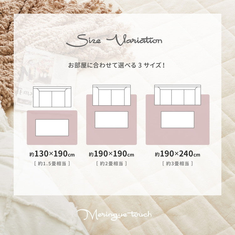 ふっくら厚手 メレンゲタッチラグ 極厚 130×190cm ラグマット ウレタン入り フランネル ホットカーペットカバー こたつ敷き かわいい 可愛い おしゃれ(代引不可)