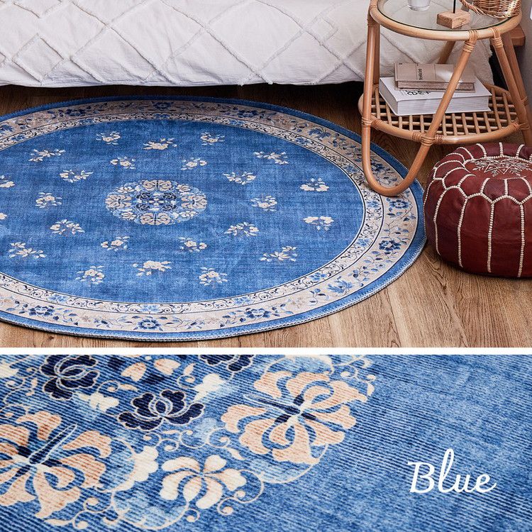 洗える 花柄フランネルラグ ミュゲ 円形 直径140cm 手洗いOK 滑り止め付き フェミニン シノワズリ 転写 韓国インテリアかわいい 可愛い おしゃれ(代引不可)
