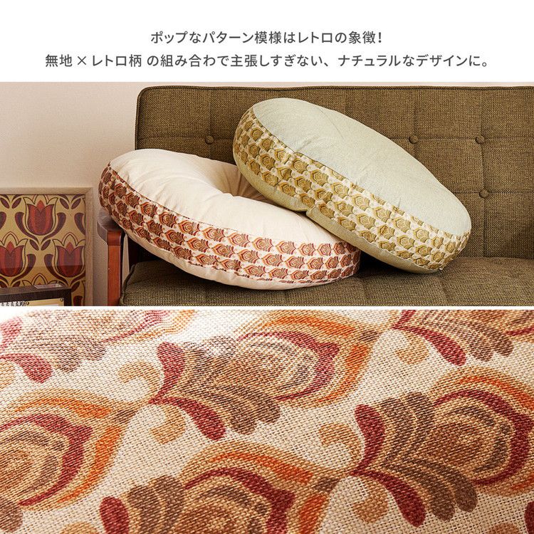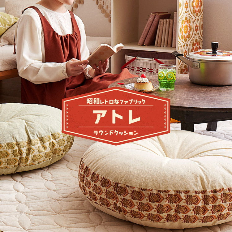 昭和レトロ ラウンドクッション アトレ 直径 約60cm 円形 座布団 オールシーズン かわいい 可愛い おしゃれ(代引不可)