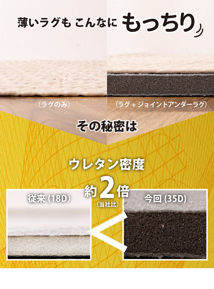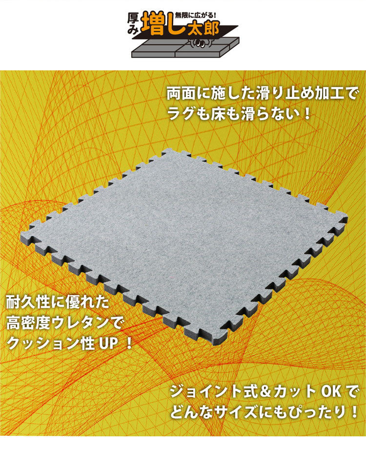 4枚セット ジョイントアンダーラグ 下敷き専用 防音 両面滑り止め ズレ防止 カットOK ジョイント式 約122cm×122cm アツマシ 厚み増し太郎 ふかふか 高密度 低反発 ウレタン(代引不可)