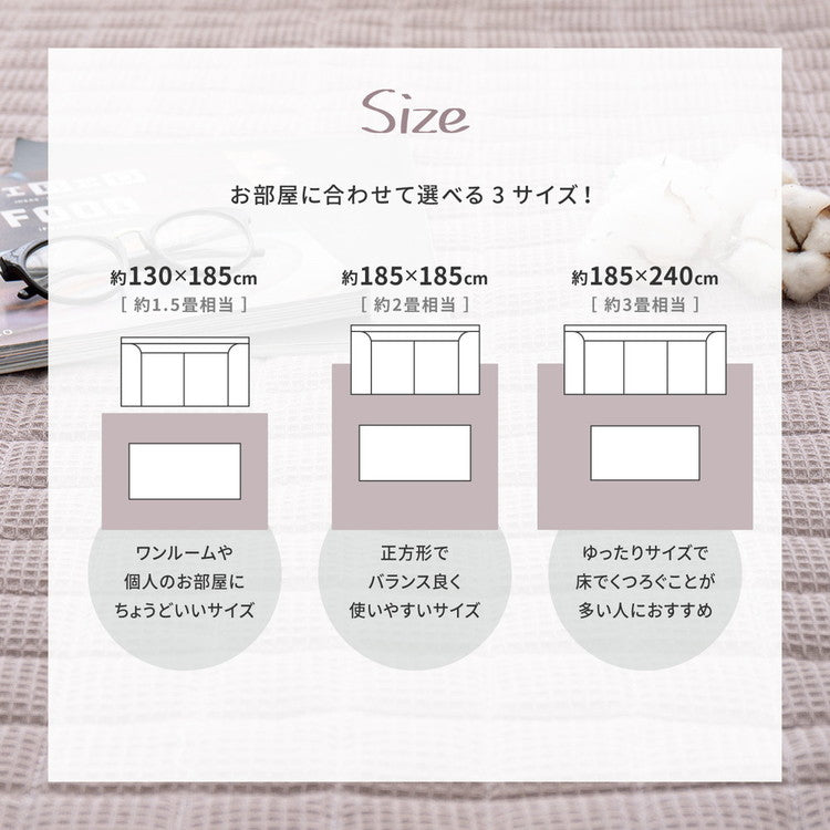 ワッフル生地のコットンラグ 130×185cm 綿100% キルティング 可愛い かわいい オールシーズン おしゃれ(代引不可)
