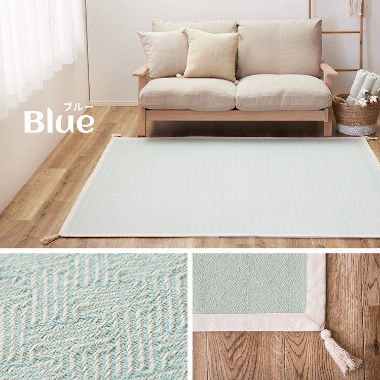洗濯機で洗える綿100%ラグ アルト 約90×185cm インド綿 ボンディング ラグマット 滑り止め付き タッセル付き ナチュラル かわいい おしゃれ オールシーズン(代引不可)