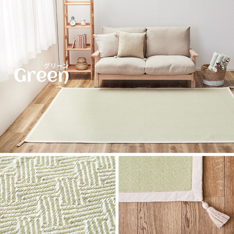 洗濯機で洗える綿100%ラグ アルト 約185×185cm インド綿 ボンディング ラグマット 滑り止め付き タッセル付き ナチュラル かわいい おしゃれ オールシーズン(代引不可)
