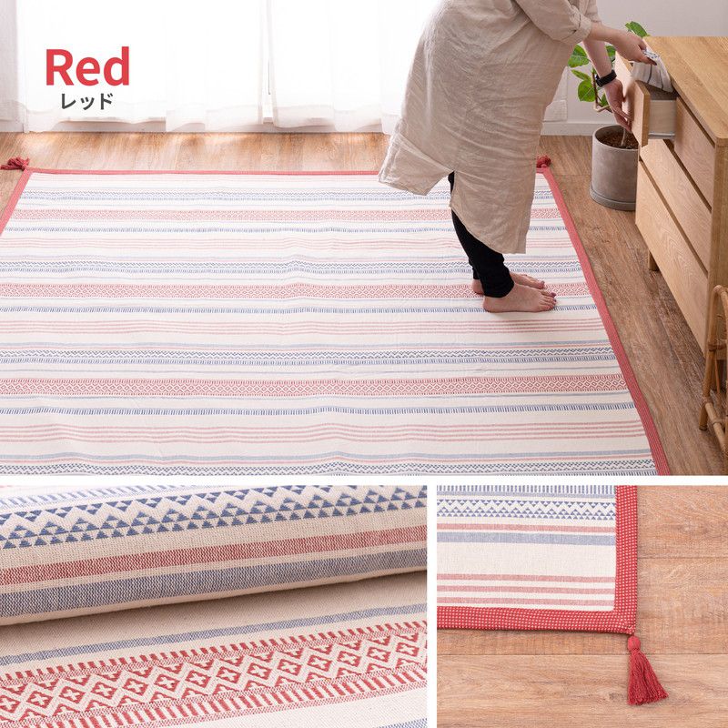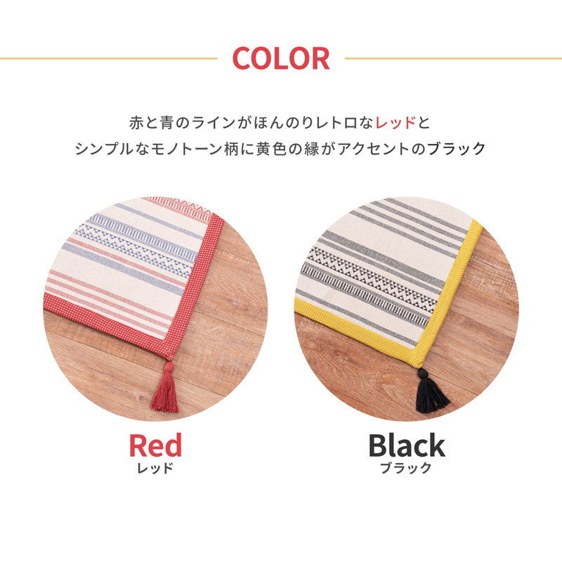 洗濯機で洗える インド綿100%ラグ 約90×185cm 約1畳 テラ フサ付き すべり止め付き コットンラグ キリム柄 オールシーズン ウォッシャブルラグ(代引不可)