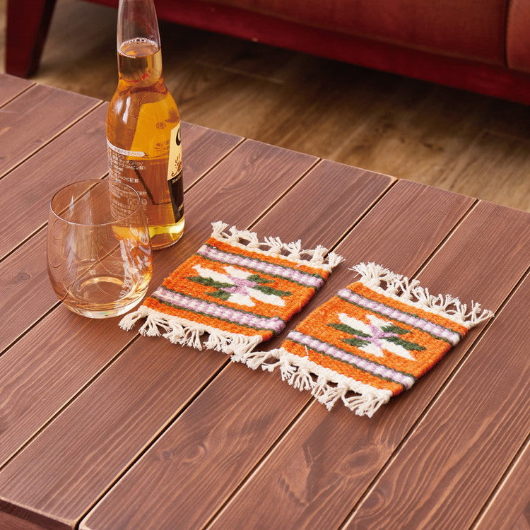 ウール100% 手織りコースター 2枚組 アンシュ イーシュ 約10×10cm キリム 羊毛 キャンプ アウトドア(代引不可)
