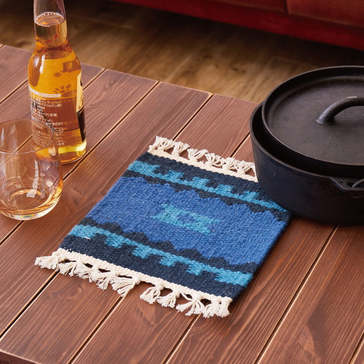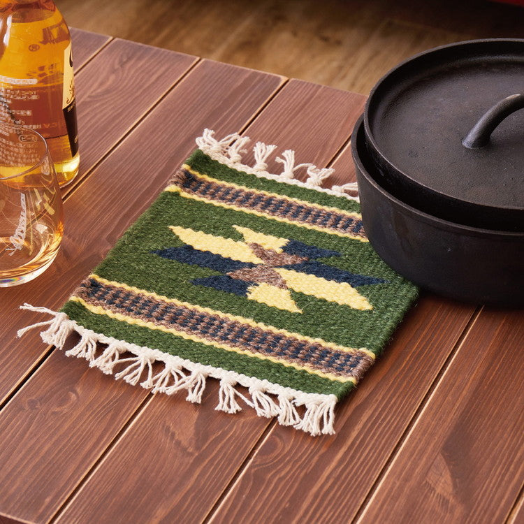 一枚一枚手織りで作ったキリム柄の鍋敷き。 ウール100%のナチュラルで優しい風合いが、空間に温かみをプラスします。 エスニックなデザインはお部屋のアクセントにぴったり。 燃えにくく丈夫な素材なので、キャンプなどのアウトドアシーンでも大活躍! 何枚も揃えて使いたくなるかわいさです。