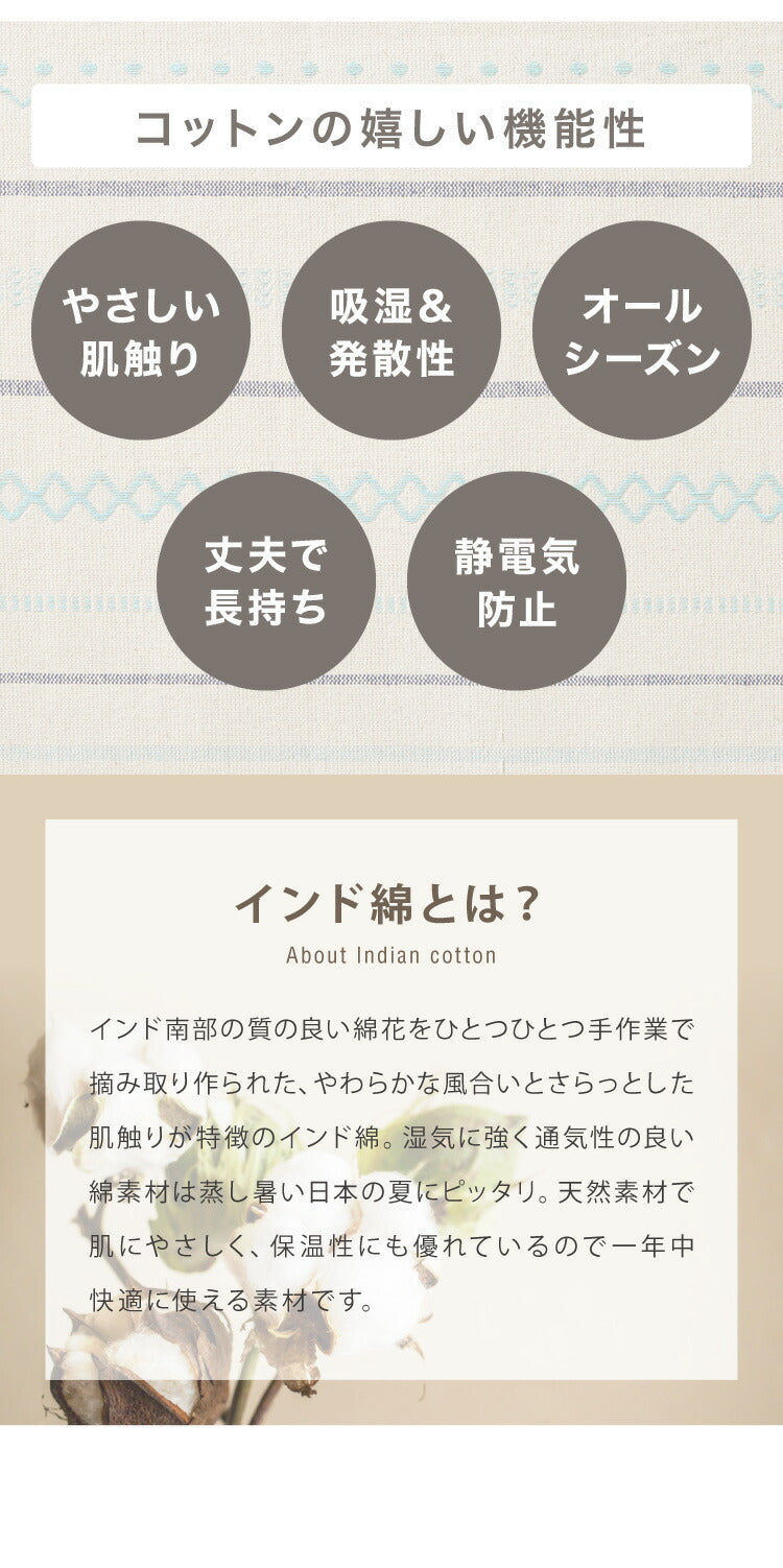 吸湿発乾性が良く年中使えるタッチ感もインド綿の人気の秘密です。