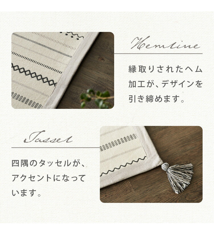四隅に付いたフサ(タッセル)でおしゃれ度アップ!