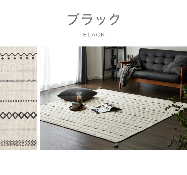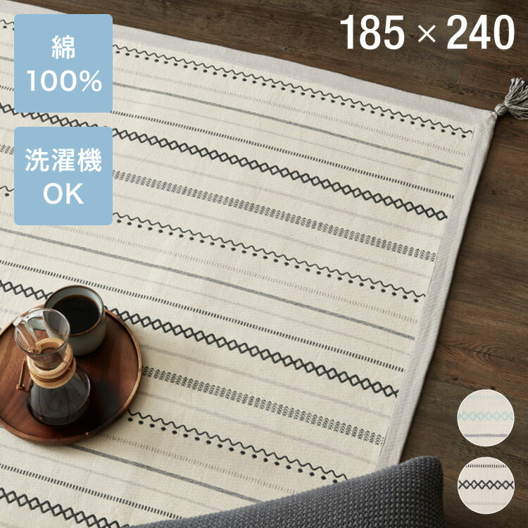洗濯機で洗えるラグ 185×240cm インド綿100%ラグ おしゃれ ネイティブ フサ付き 約3畳 かわいい 幾何学 ウレタン ラグマット コットンラグ タッセル 洗濯OK ウォッシャブルラグ 春夏 北欧(代引不可)
