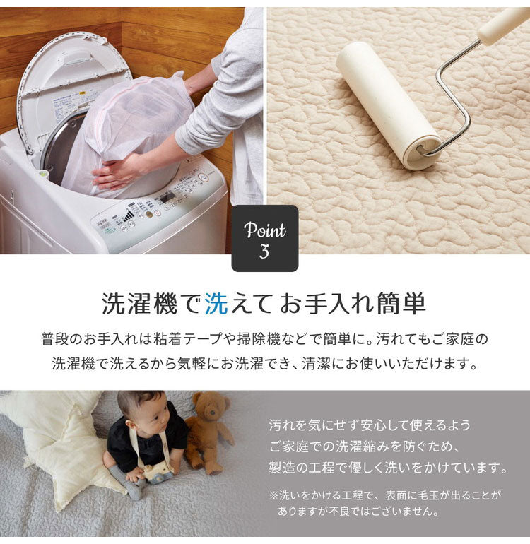 ナチュラルなカラーでいろんなお部屋に合わせやすく、汚れても洗えるウォッシャブル仕様でいつも清潔に使えます。