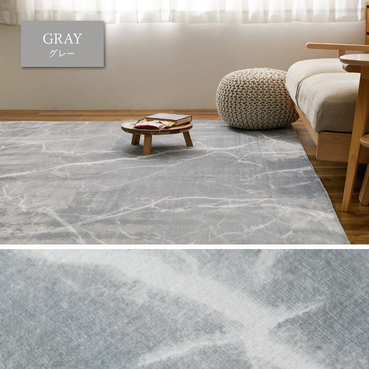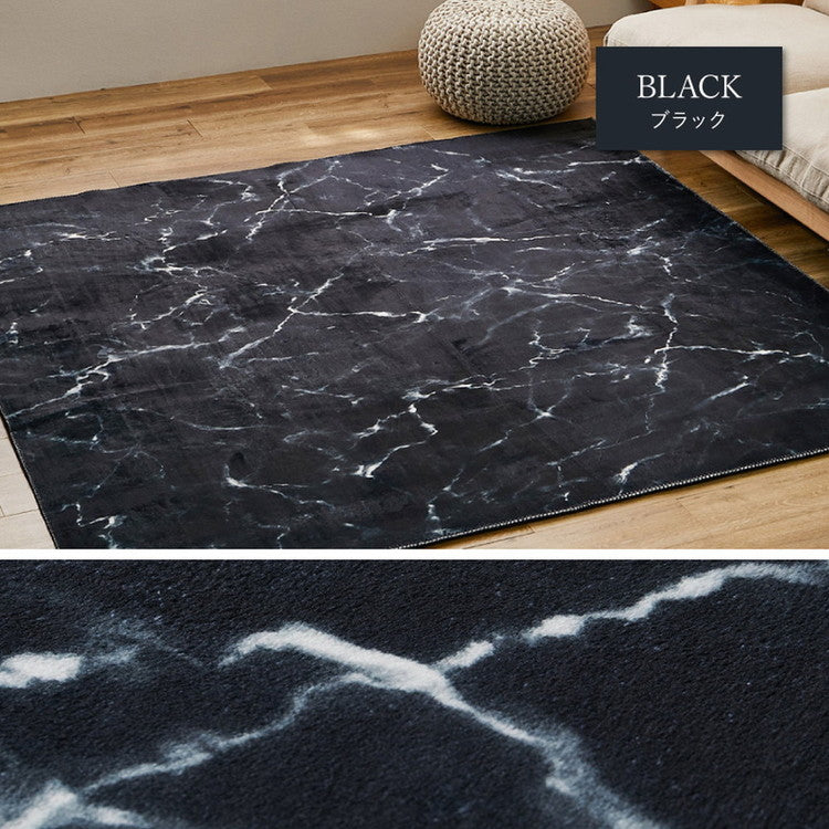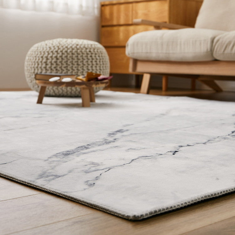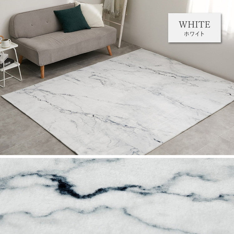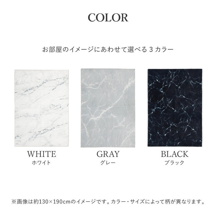 上品で高級感のある大理石柄のプリントラグ。海外風インテリアや、ホワイトコーデにもあうシックなデザインです。ソフトフランネルのなめらかな肌触りは、思わず素肌で触れたくなるようなタッチ感。短毛でやわらかく、コンパクトに折りたためるから収納にも困らず、お手入れも簡単。汚れても洗えるからいつも清潔にお使いいただけます。裏面には滑り止め付きでフローリングの上でもズレにくく安心。寒い季節もあたたかく過ごせるよう、ホットカーペット・床暖房に対応しています。