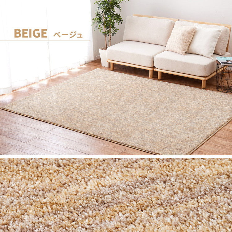 サラふわな手触りが心地いいハイスペックなラグ。 化学繊維の中でもトップクラスの耐久性を誇るナイロンを使用しているので、 敷きたての風合いを長く保ちます。 無地のなかにも色に変化がある染色を施すことで、 深みのある大人な雰囲気に仕上がりました。 さらに暮らしにうれしい5つの機能つきで 小さなお子様やペットがいるご家庭でも安心してお使いいただけます。