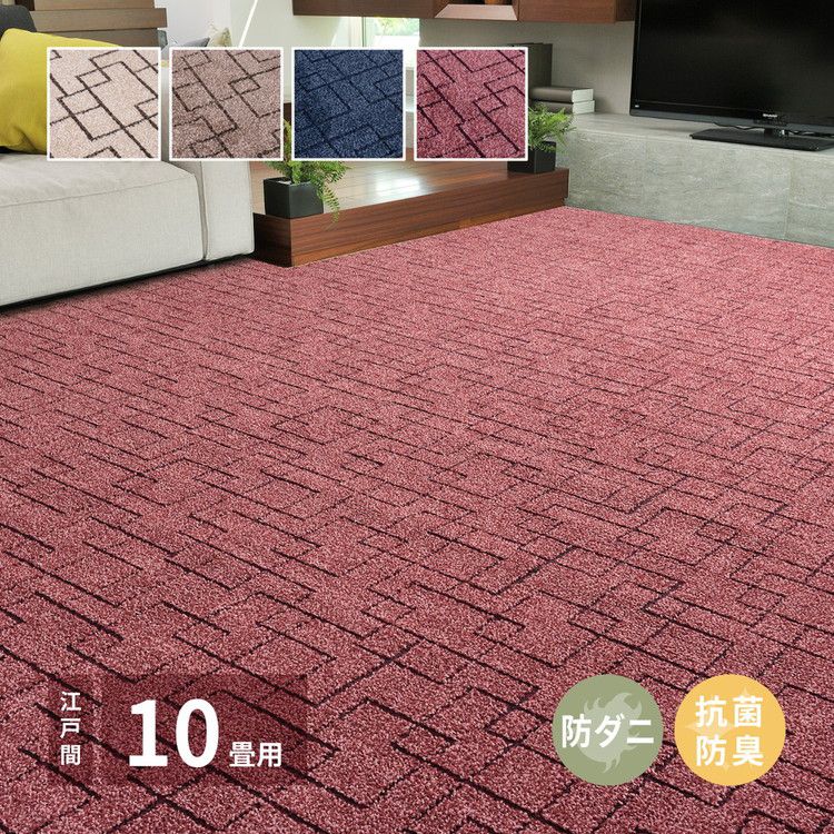 日本製 防ダニ 敷き詰めカーペット ウォール 江戸間10帖 10畳 抗菌 防臭 モダン ホテル柄 タフトカーペット ラグマット(代引不可)