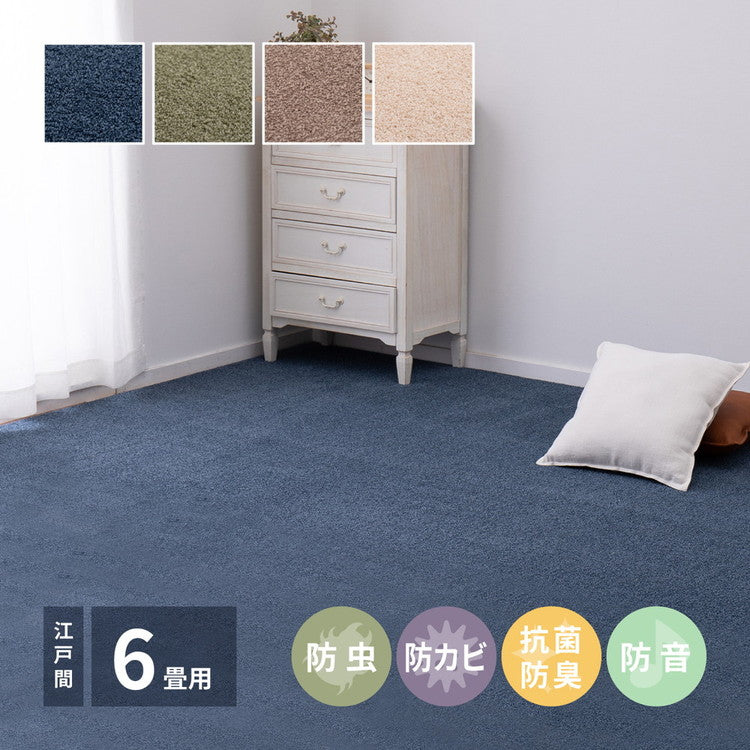 日本製 アース防ダニ・防虫 敷き詰めカーペット スティーマ 江戸間6畳 261×352cm 防ダニ 防虫 抗菌 防臭 防音 タフトカーペット ラグマット 萩原 おしゃれ(代引不可)