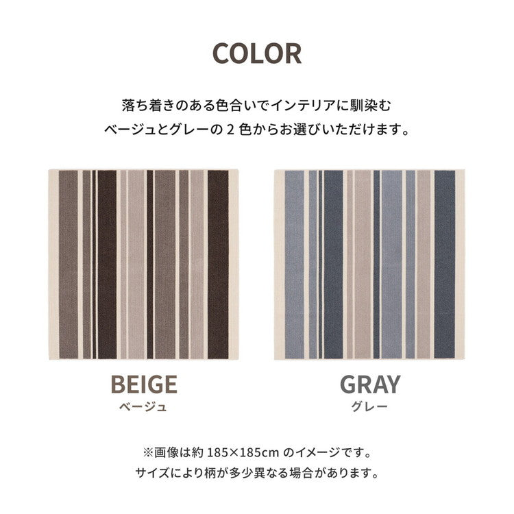 日本製 ラグ 185×185cm 抗菌 防臭 防ダニ ボーダー柄 ストライプ ラボルテ 国産 ラグマット オールシーズン おしゃれ(代引不可)