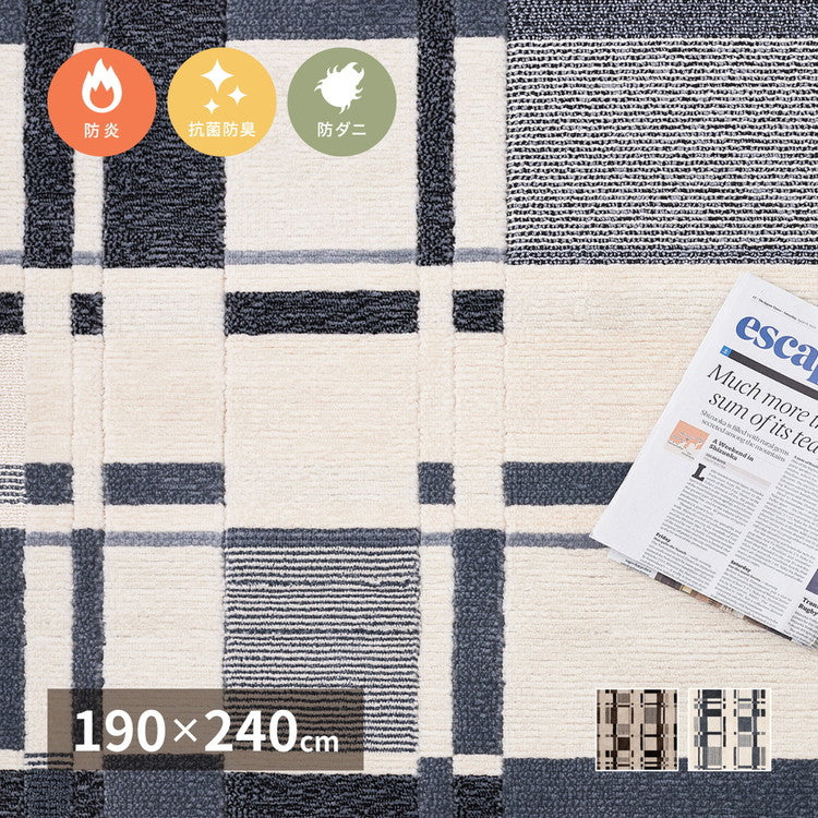 日本製 防炎 ラグ 190×240cm モダン柄 タフト織り 抗菌 防臭 防ダニ 国産 タフトラグ ラグマット シンプル おしゃれ(代引不可)