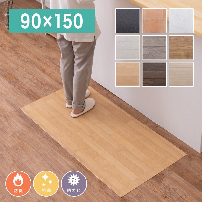 日本製 防炎 抗菌 防カビ 水拭きできるクッションフロア 90×150cm キッチンマット 拭ける フロアシート フローリングマット DIY 大理石 木目 タイル柄 おしゃれ(代引不可)