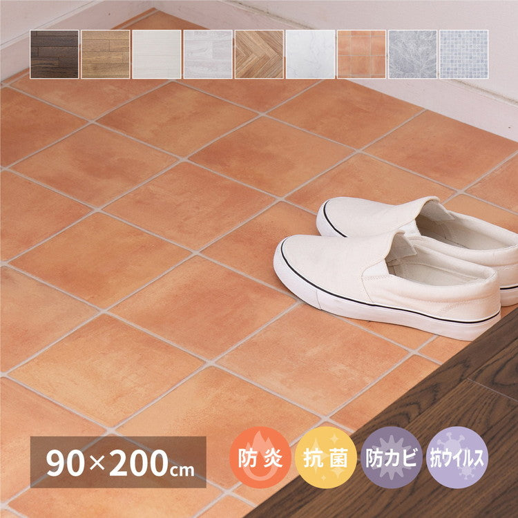 日本製 防炎 抗菌 防カビ 水拭きできるクッションフロアII 90×200 キッチンマット 拭ける フロアシート フローリングマット DIY 大理石 木目 タイル柄 おしゃれ(代引不可)