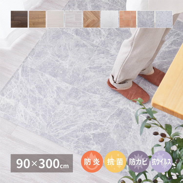 日本製 防炎 抗菌 防カビ 水拭きできるクッションフロアII 90×300 キッチンマット 拭ける フロアシート フローリングマット DIY 大理石 木目 タイル柄 おしゃれ(代引不可)