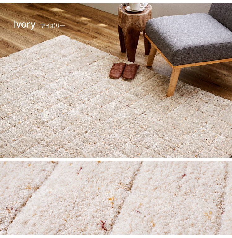 毛足がある立体的な格子デザインで、高級感あふれる国産ラグ。