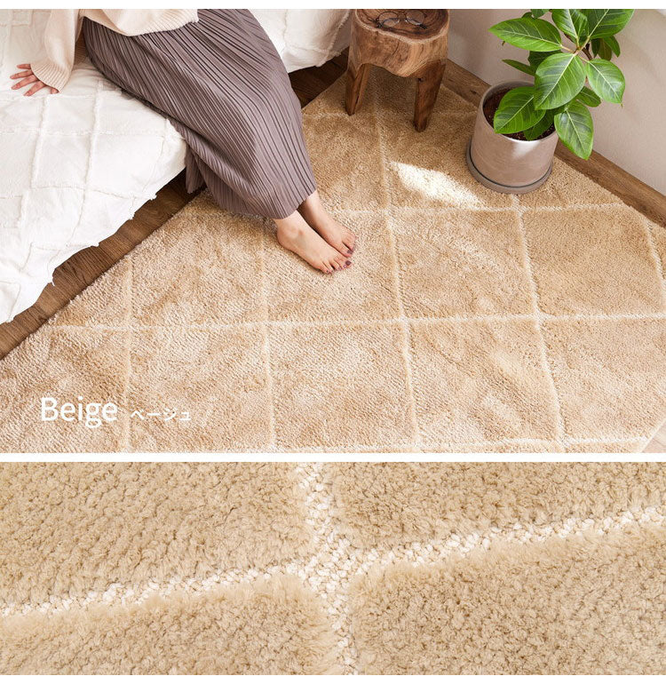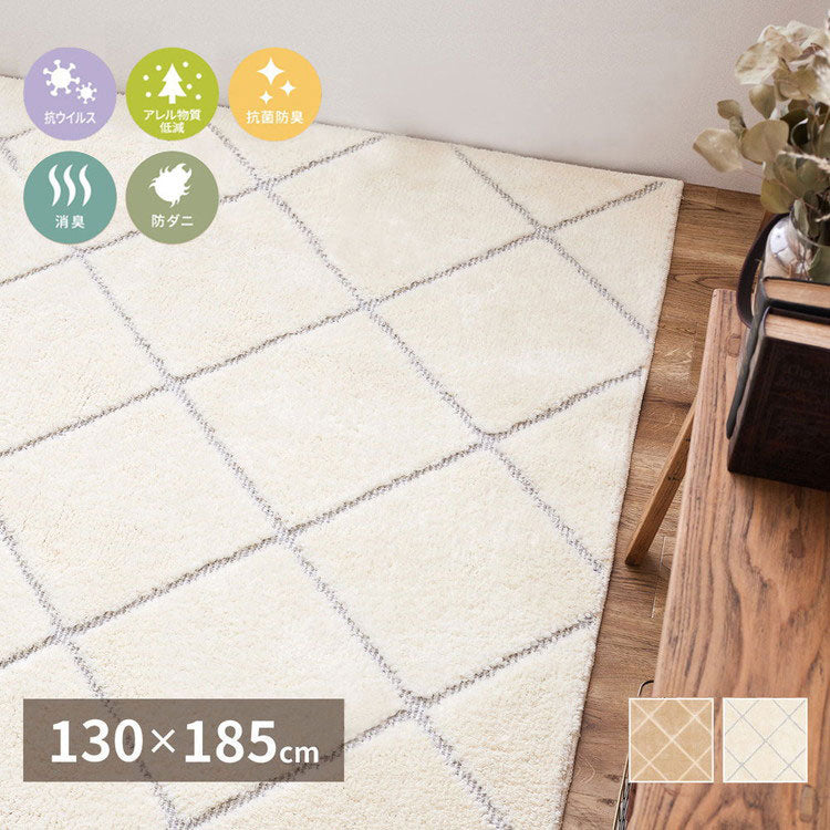日本製 ラグ 130×185cm ベニワレン柄 かわいい タフト織り 抗菌 防臭 防ダニ 抗アレルゲン 抗ウイルス 国産 タフトラグ ラグマット シンプル 韓国インテリア おしゃれ(代引不可)