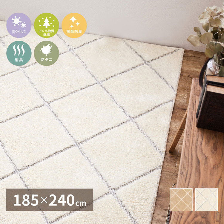 日本製 ラグ 185×240cm ベニワレン柄 かわいい タフト織り 抗菌 防臭 防ダニ 抗アレルゲン 抗ウイルス 国産 タフトラグ ラグマット シンプル 韓国インテリア おしゃれ(代引不可)