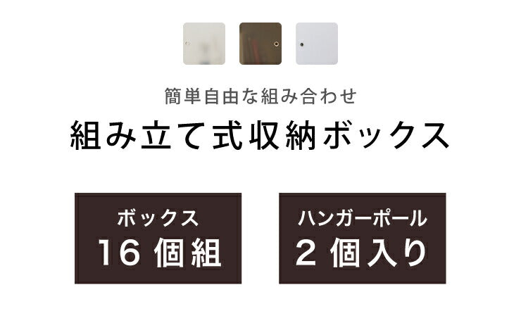 収納ボックス 組み立て式 16個組 ハンガーポール2個付き 大容量 組み立て自由 簡単 コンパクト 防塵 防カビ 防水 収納棚 省スペース おしゃれ 1人暮らし 新生活 収納 収納家具 クローゼット オープンラック