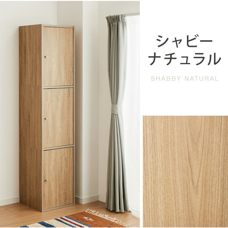 縦長で置き場所を選ばない、シンプルな扉付きカラーボックス
