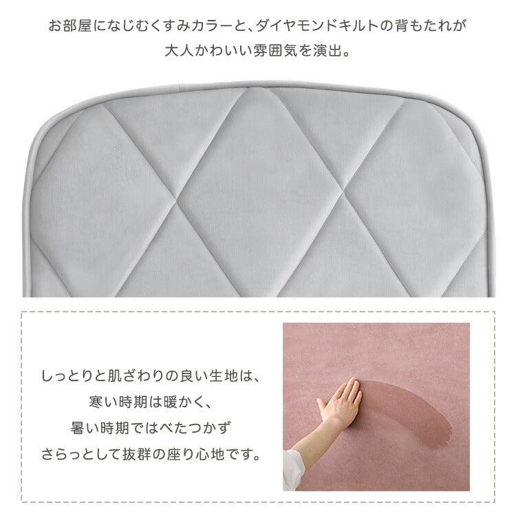 落ち着いたくすみカラーと背もたれのダイヤモンドキルトが上品な大人かわいい雰囲気を演出してくれます。