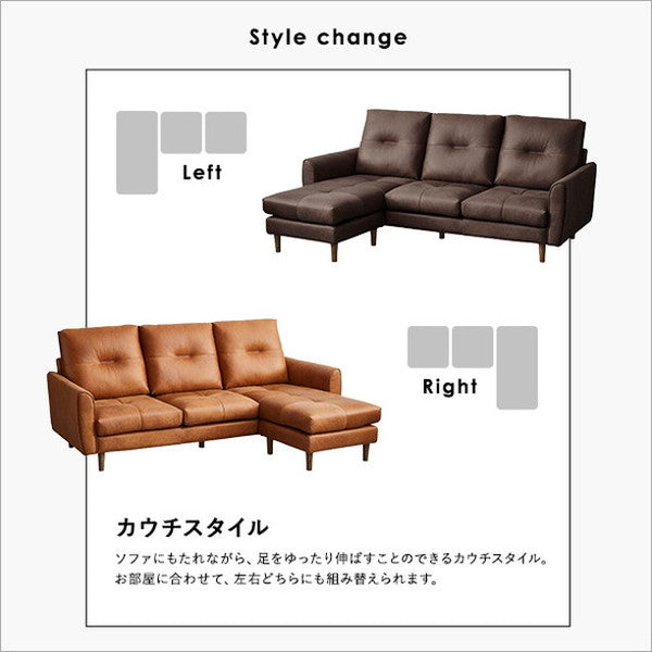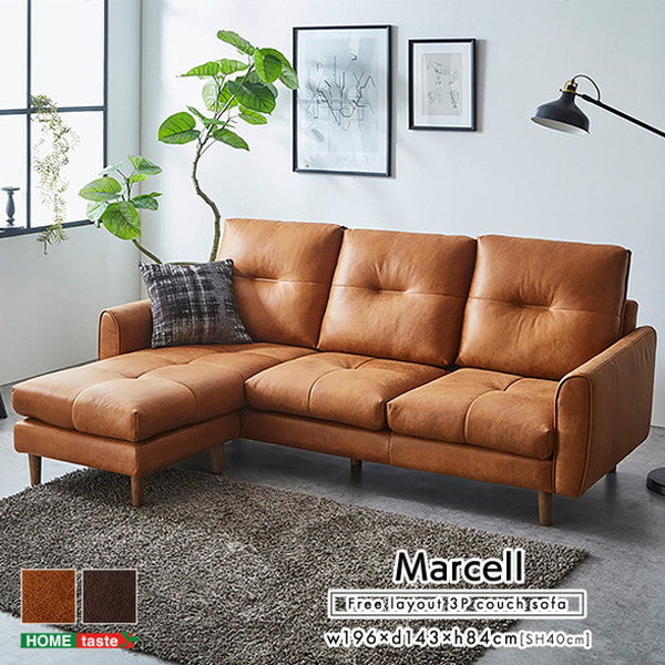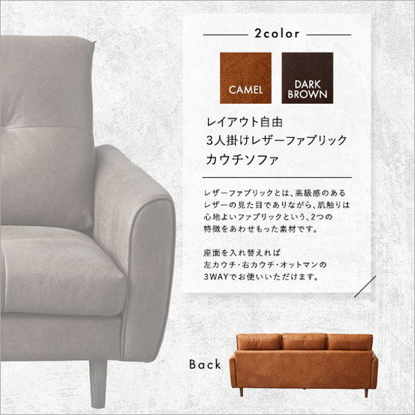 レイアウト自由 3人掛け レザーファブリック カウチソファ【Marcell-マーセル-】 カウチソファ 3人掛け レザー ファブリック ヴィンテージ オットマン 高級感 ブラウン キャメル 高さ13cm(代引不可)