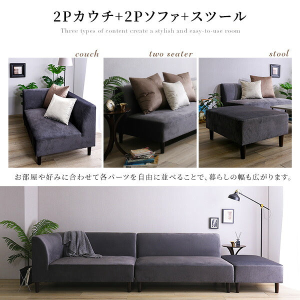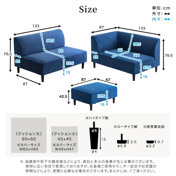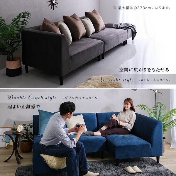 クッション付き 組み替え可能なベロアカウチソファVELUURI ベルーリ カウチソファ ソファ スツール クッション付き ファブリック 撥水 汚れ 掃除簡単 ファミリー おしゃれ ロータイプ ハイタイプ(代引不可)