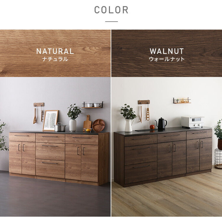 日本製 特殊鋼板を使った組み合わせキッチンカウンター 180cm 引き出し収納+扉収納+扉収納 キッチンカウンター キッチン収納 木目 スチール 収納棚 キッチン リビング(代引不可)
