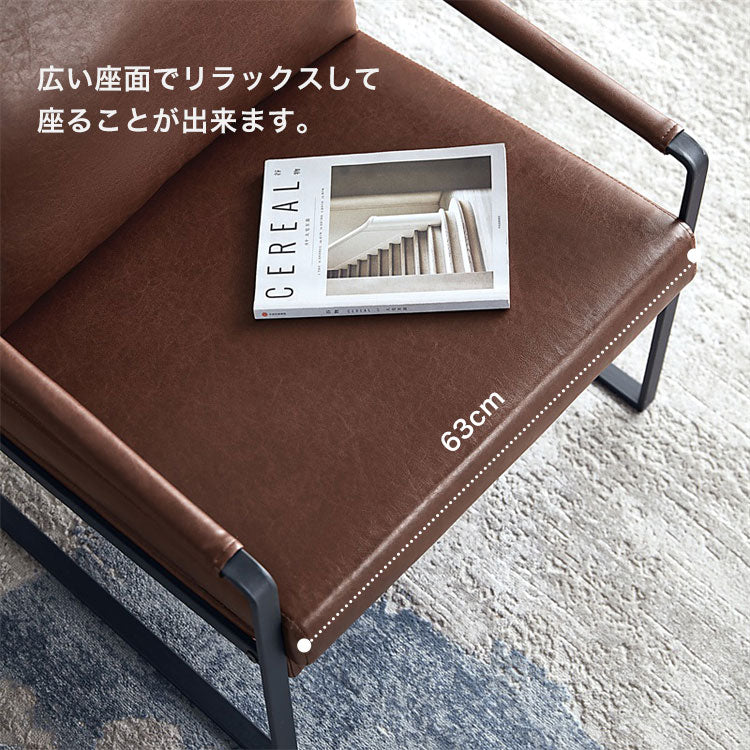 この商品は、ヴィンテージ調のPVCレザーと無垢材フレームを使用した1人掛けアームチェアです。広い座面で足を組んでゆったり座れる設計で、背もたれには柔らかなポリエチレンフォームが入っており、快適にもたれかかつことが出来ます。ブラウンの落ち着いたカラーが魅力です。