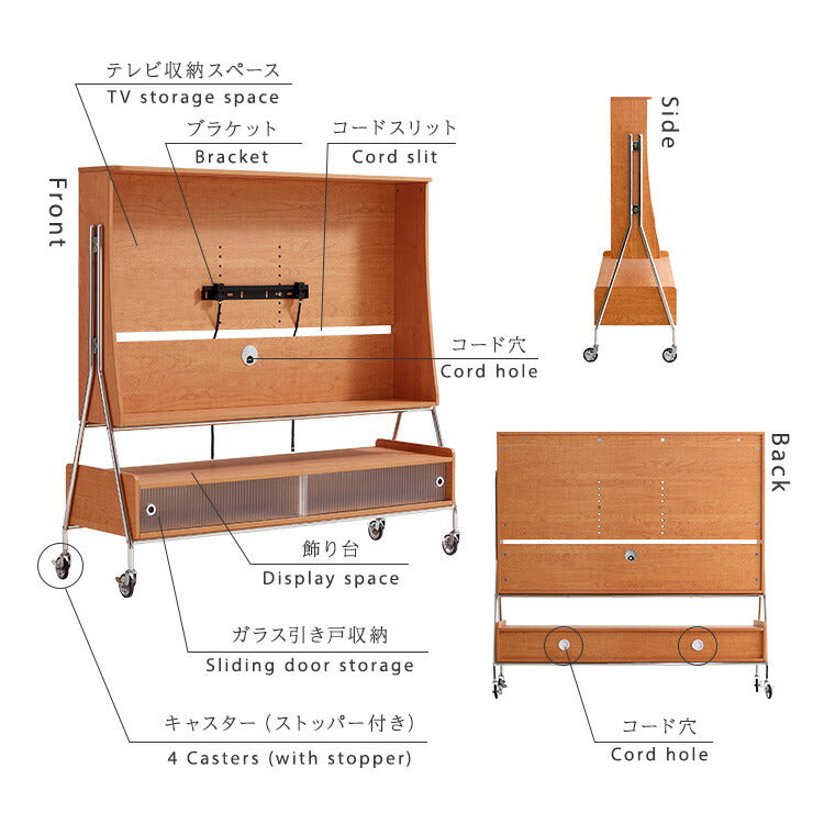 TVスタンドシェルフ NIVEL ナイベル キャスター付き テレビ台 テレビスタンド ナチュラル 収納 テレビ下収納 テレビ リビング(代引不可)