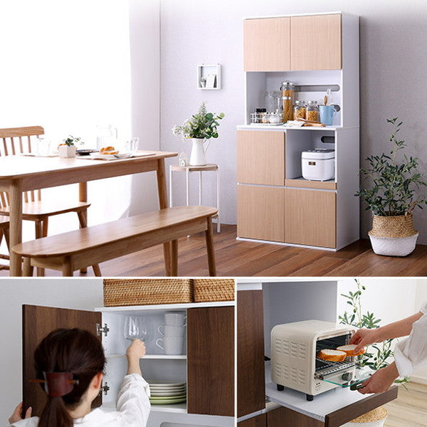 スリム食器棚 79cm幅 食器棚 79cm幅 スリムタイプ 大容量 2口コンセント スライドトレー 可動棚 オープンスペース 高さ調整 コンパクト 開き戸 キッチン収納 作業台(代引不可)