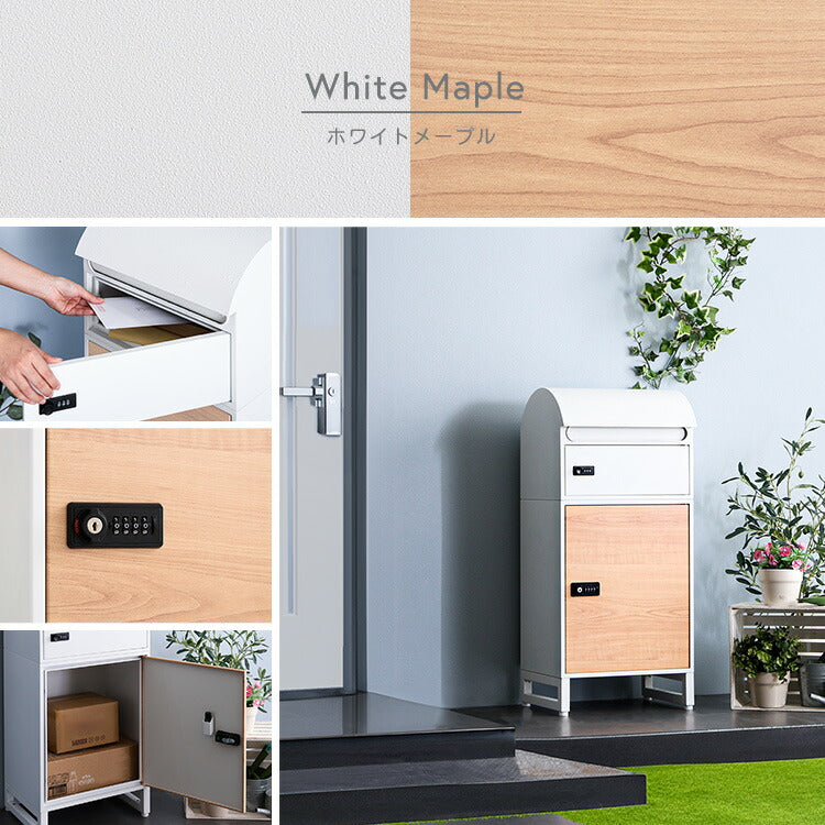 ホワイト×メープル色のデザインの宅配ボックスです。