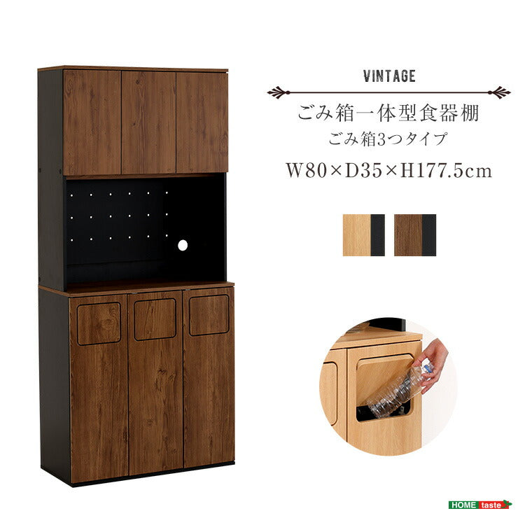 ヴィンテージ ごみ箱一体型食器棚 ごみ箱3つタイプ 食器棚 ゴミ箱上収納 キッチン ダイニング ゴミ箱 食器収納 収納 収納棚(代引不可)