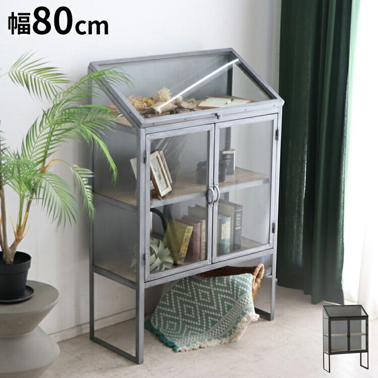 アンティーク調 ディスプレイラック ガラス扉 キャビネット 幅80cm 扉付き スチール脚 おしゃれ 北欧 コレクションケース(代引不可)