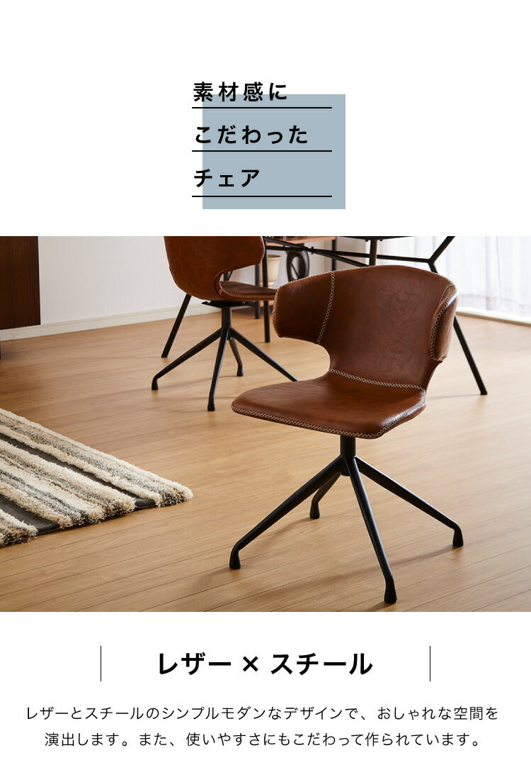 回転 ダイニングチェア 360度 回転チェア 回転椅子 PUレザー スチール脚 椅子 イス 回転式 ステッチ デスクチェア アーマー ラウンドチェア おしゃれ(代引不可)